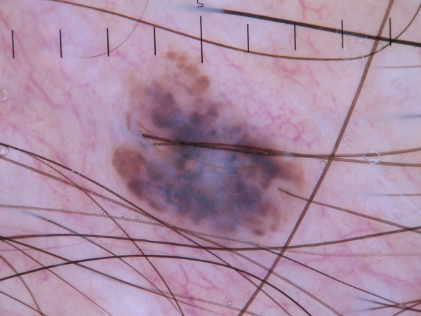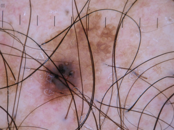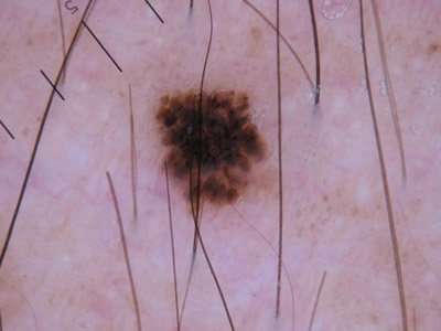 Figure. Close-up views of images from the result comparison. (a) Original dermoscopy images. (b) Result from using our feature-preserving artifact removal method. (c) Result from using Schemid et al.’s method.